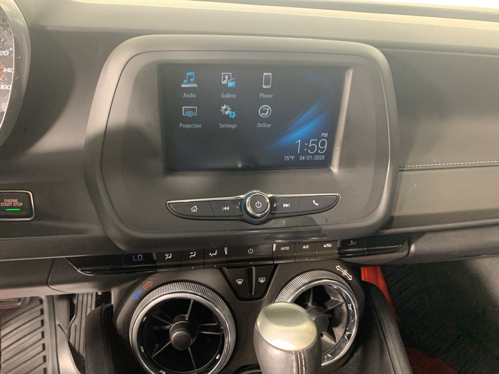 Bluetooth technology is built into this vehicle, keeping your hands on the steering wheel and your focus on the road. Start this 2017 Chevrolet Camaro from inside with remote start. This model offers Apple CarPlay for seamless connectivity. This small car is a manufacturer certified pre-owned vehicle. This vehicle offers Automatic Climate Control for personalized comfort. See what's behind you with the back up camera on it. This model shines with an exquisite metallic silver exterior finish. Keep safely connected while in it with OnStar. You may enjoy services like Automatic Crash Response, Navigation, Roadside Assistance and Hands-Free Calling. Enjoy the incredible handling with the rear wheel drive on this vehicle. The Chevrolet Camaro has a V6, 3.6L high output engine. Set the temperature exactly where you are most comfortable in it. The fan speed and temperature will automatically adjust to maintain your preferred zone climate. This model is accented with a stylish rear spoiler.