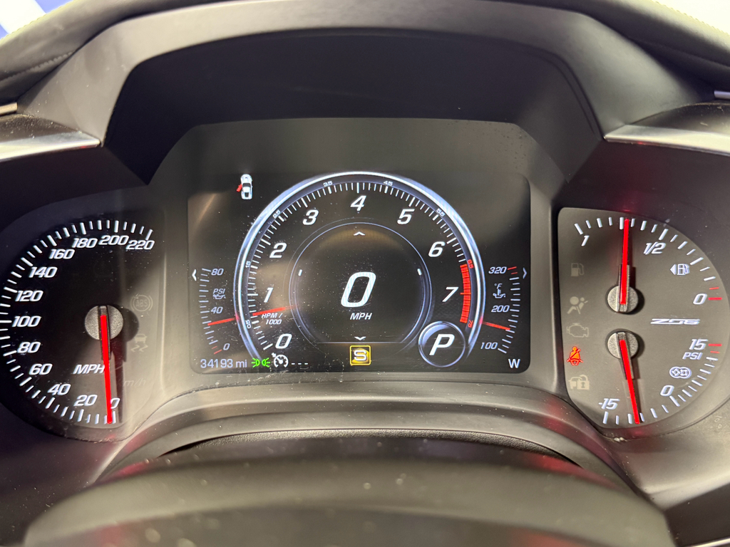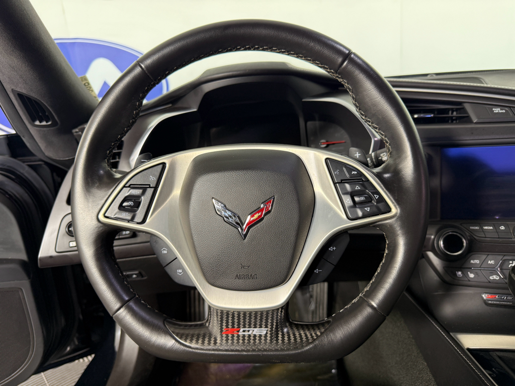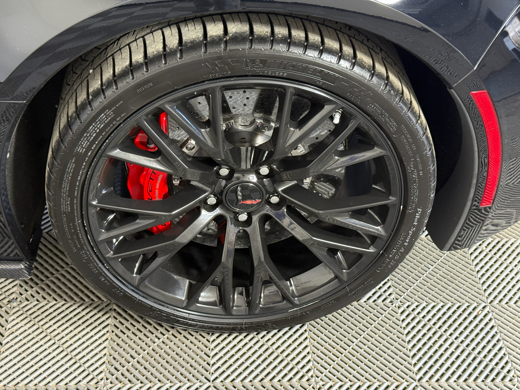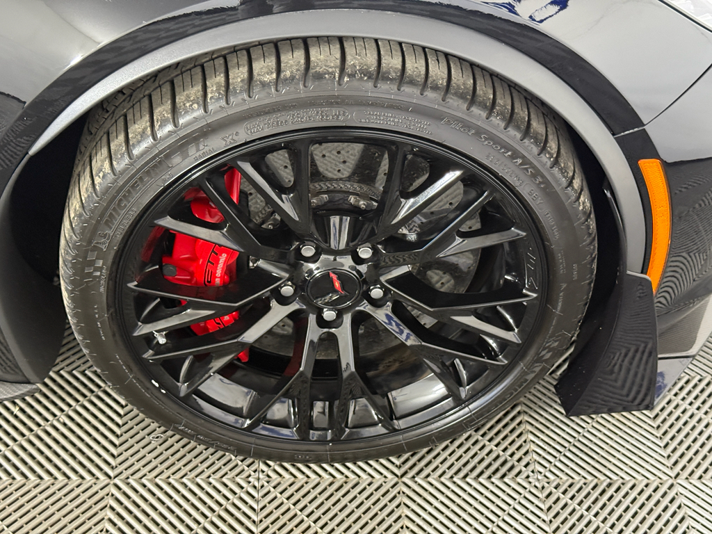Preferred Equipment Group 3LZ: Memory Package; Power Lumbar/bolster Seat Adjusters; Luggage Shade; Front Curb View Cameras; Cargo Net; Chevrolet MyLink Radio with Navigation; Heated and Vented Driver and Front Passenger Seats; Body-Color Outside Heated Power-Adjustable Mirrors; Head-Up Display; Theft Deterrent System; 3LZ Interior Trim; Bose Advanced 10-Speaker Audio System Feature; Sueded Microfiber-Wrapped Interior Trim Package; Auto-Dimming Inside Frameless Rearview Mirror; Performance Data and Video Recorder; Custom Leather Wrapped Interior Package; Universal Home Remote. 4-Wheel Antilock 4-Wheel Disc Ceramic Brakes. Gas Guzzler Tax. 19" X 10" Front and 20" X 12" Rear Z06 Black Aluminum Wheels. Cargo Shade with Crossed Flag Logo. Battery Protection Package. **Equipment listed is based on original vehicle build and subject to change. Please confirm the accuracy of the included equipment by calling the dealer prior to purchase.**