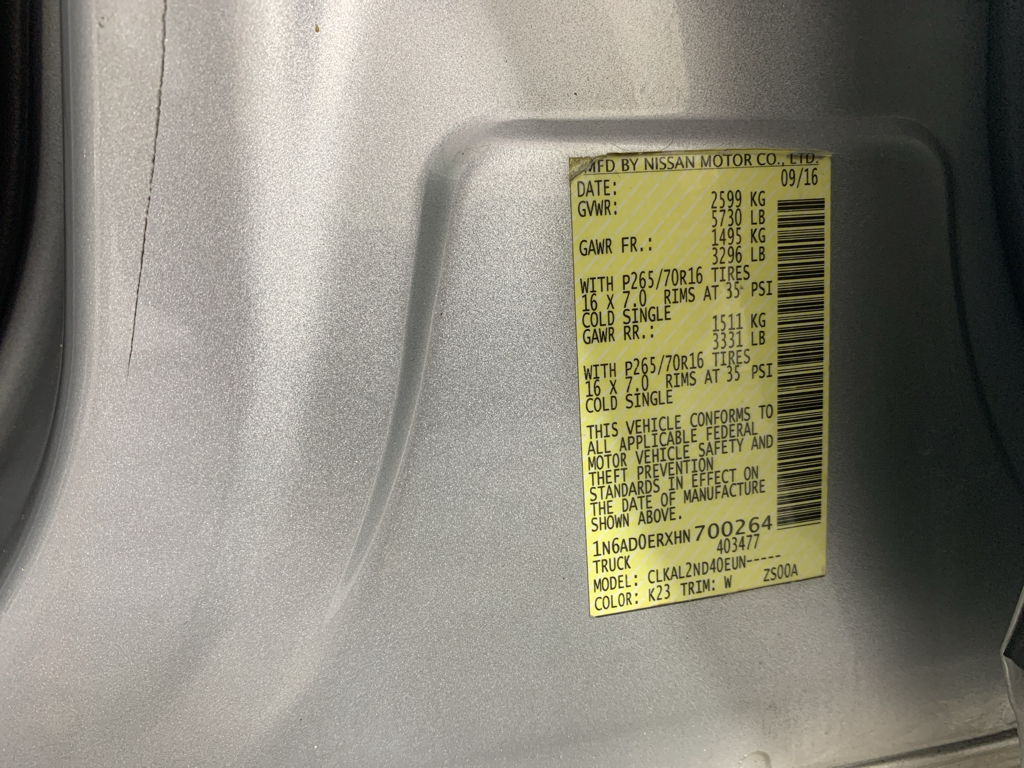 Bluetooth technology is built into the vehicle, keeping your hands on the steering wheel and your focus on the road. This small pickup is equipped with the latest generation of XM/Sirius Radio. The Nissan Frontier has a clean AutoCheck report. This vehicle has satellite radio capabilities. It has gone through a stringent manufacturer pre-owned certification process, including a meticulous mechanical and reconditioning processes. Take the stress out of car buying with this certified pre-owned. Protect this 2017 Nissan Frontier from unwanted accidents with a cutting edge backup camera system. This vehicle has a V6, 4.0L high output engine. Quickly unlock it with keyless entry. Maintaining a stable interior temperature in this unit is easy with the climate control system. The vehicle is rear wheel drive. This Nissan Frontier shines with an exquisite metallic silver exterior finish. The Electronic Stability Control will keep you on your intended path. Enjoy the tried and true gasoline engine in this Nissan Frontier.