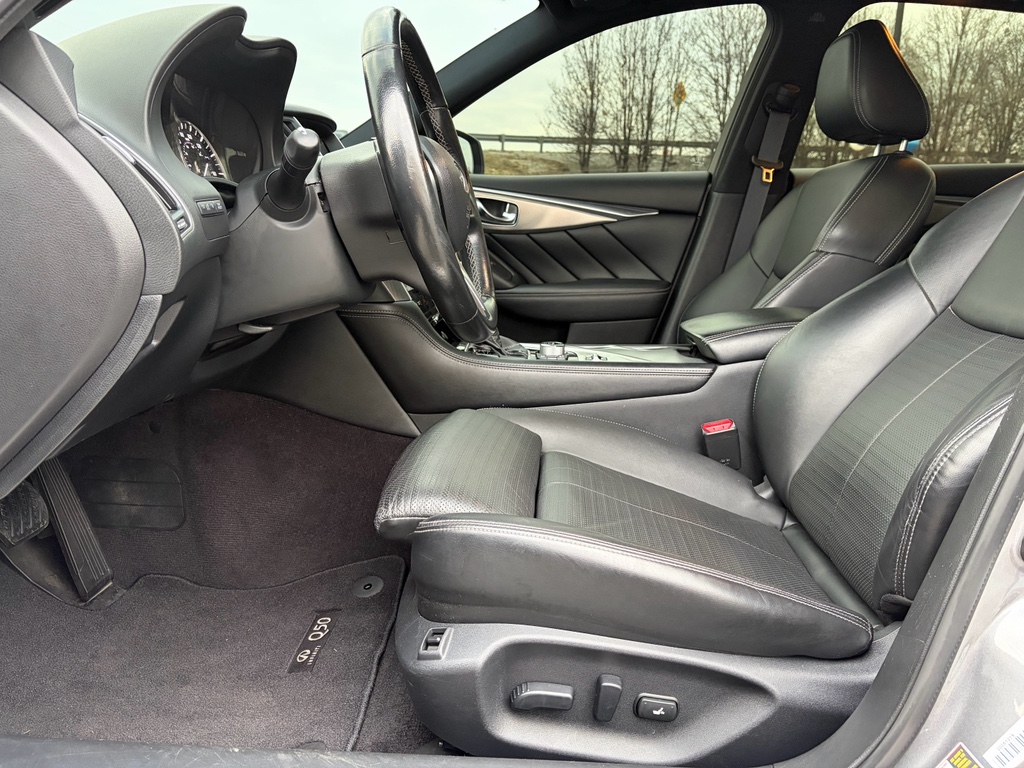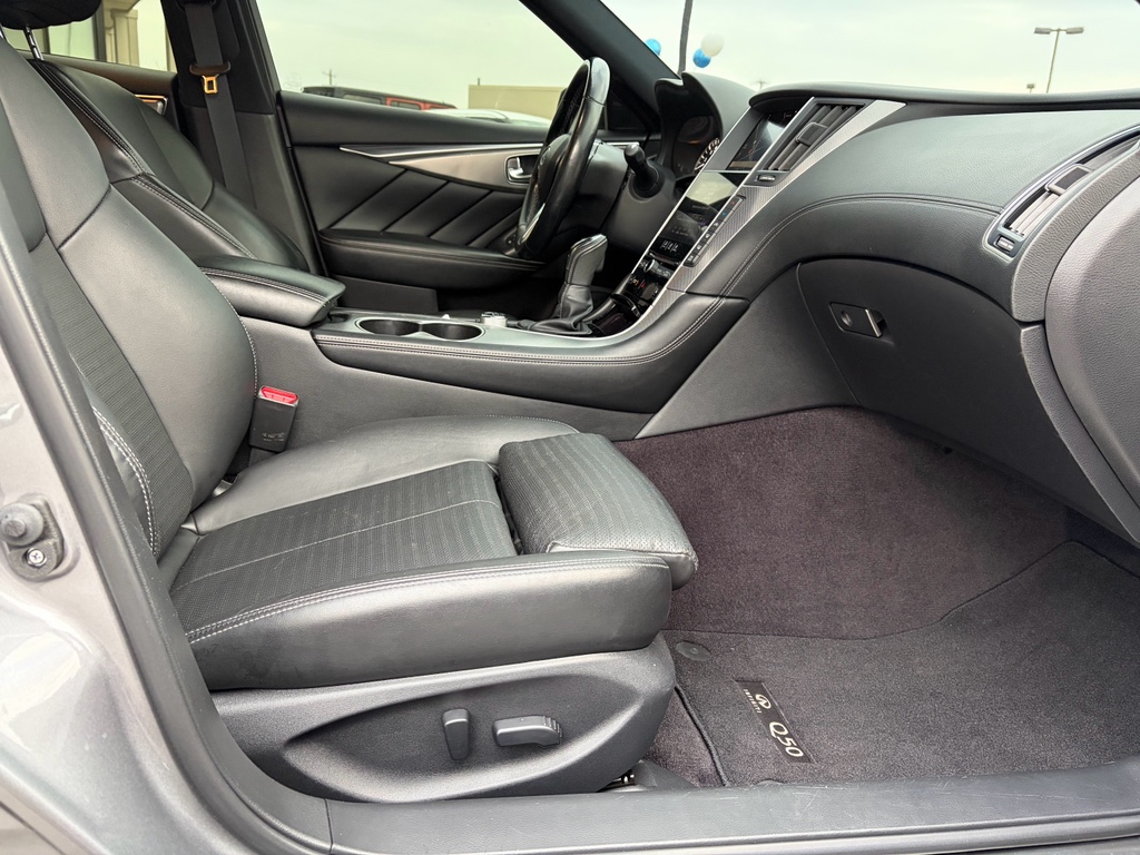 The installed navigation system will keep you on the right path. It is pure luxury with a heated steering wheel. This 2020 INFINITI Q50 's Forward Collision Warning system alerts the driver to potential front-end collisions, enhancing safety. Protect this unit from unwanted accidents with a cutting edge backup camera system. Bluetooth technology is built into it, keeping your hands on the steering wheel and your focus on the road. It offers Android Auto for seamless smartphone integration. This vehicle is equipped with the latest generation of XM/Sirius Radio. Apple CarPlay: Seamless smartphone integration for this mid-size car - stay connected and entertained on the go! This INFINITI Q50 offers Automatic Climate Control for personalized comfort. This mid-size car has gone through a stringent manufacturer pre-owned certification process, including a meticulous mechanical and reconditioning processes. Take the stress out of car buying with this certified pre-owned. The leather seats in this INFINITI Q50 are a must for buyers looking for comfort, durability, and style.Keep your hands warm all winter with a heated steering wheel in this 2020 INFINITI Q50 .Mid-sized cars are the perfect size. This unit offers Android Auto for seamless smartphone integration. This vehicle offers Apple CarPlay for seamless connectivity. The INFINITI Q50 offers Automatic Climate Control for personalized comfort. The INFINITI Q50 has an automatic transmission. Protect this INFINITI Q50 from unwanted accidents with a cutting edge backup camera system. This 2020 INFINITI Q50 has gone through a stringent manufacturer pre-owned certification process, including a meticulous mechanical and reconditioning processes. Take the stress out of car buying with this certified pre-owned. Maintaining a stable interior temperature in the INFINITI Q50 is easy with the climate control system. Easily set your speed in the INFINITI Q50 with a state of the art cruise control system. Increase or decrease velocity with the touch of a button. The Electronic Stability Control will keep you on your intended path. This vehicle has a V6, 3.0L high output engine. It has fog lights for all weather conditions. This unit's Forward Collision Warning feature alerts drivers to potential front-end collisions. Enjoy the tried and true gasoline engine in it. The vehicle emanates grace with its stylish gray exterior. Bluetooth technology is built into this mid-size car, keeping your hands on the steering wheel and your focus on the road. This unit is pure luxury with a heated steering wheel. The leather seats in this 2020 INFINITI Q50 are a must for buyers looking for comfort, durability, and style. Help alleviate lower back pain with the driver seat lumbar support in it. You'll never again be lost in a crowded city or a country region with the navigation system on the vehicle. The rear parking assist technology on this 2020 INFINITI Q50 will put you at ease when reversing. The system alerts you as you get closer to an obstruction. Enjoy the incredible handling with the rear wheel drive on the INFINITI Q50. Start it from inside with remote start. The INFINITI Q50 is equipped with the latest generation of XM/Sirius Radio.