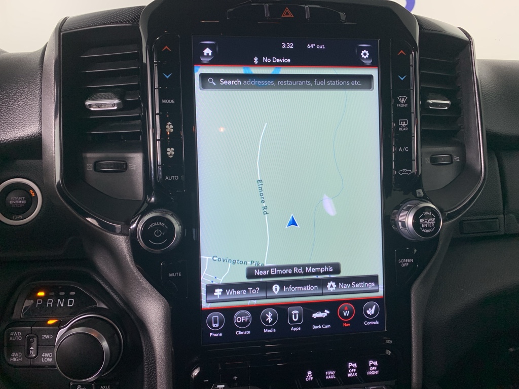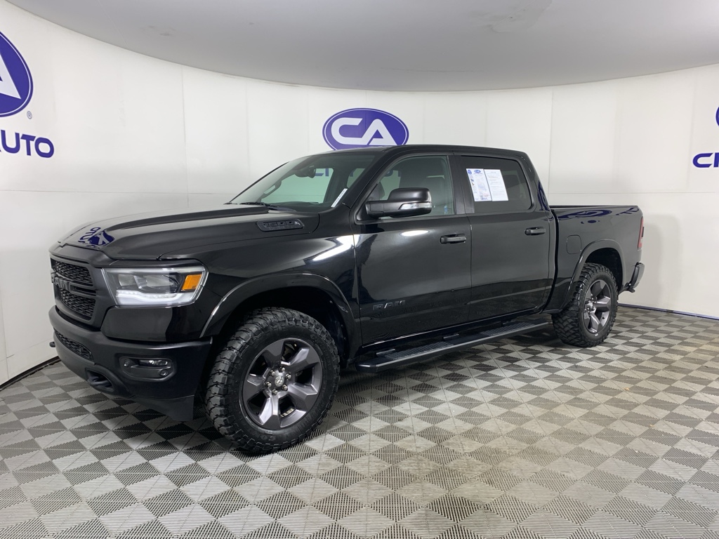 Quick Order Package 25Z Big Horn: Big Horn Badge. Big Horn Level 2 Equipment Group: Rear Window Defroster; ParkSense Front/rear Park Assist with Stop; Rear View Auto Dim Mirror; Power Adjustable Pedals; Rear Power Sliding Window; Rear Dome with On/off Switch Lamp; Glove Box Lamp; Power 4-Way Driver Lumbar Adjust; 115V Auxiliary Rear Power Outlet; Power 8-Way Driver Seat; 2 USB Full Function/charge Only Media Hub; Heated Front Seats; Heated Steering Wheel; Foam Bottle Insert (door Trim Panel); Class IV Receiver Hitch; Dampened Tailgate; Security Alarm; Black Premium Power Mirrors; Big Horn Instrument Panel Badge; Remote Start System; SiriusXM Satellite Radio; 400W Inverter; Air Conditioning ATC with Dual Zone Control; 115V Auxiliary Power Outlet; Universal Garage Door Opener; 2nd Row in Floor Storage Bins; Sun Visors with Illuminated Vanity Mirrors. Built-To-serve Edition: Black Door Handles; Steering Gear Skid Plate; Falken Brand Tires; LED Taillamps; Black Headlamp Bezels; Front Suspension Skid Plate; Power 4-Way Driver Lumbar Adjust; US Flag Decal; 275/55R20 OWL All-Terrain Tires; Front Extra Heavy Duty Shock Absorbers; Black Tubular Side Steps; Power 8-Way Driver Seat; Front LED Fog Lamps; Full Length Floor Console; Full Size Spare Tire; LED Reflector Headlamps; Black Rear Bumper; E-Locker Rear Axle; RAM Grille Badge - Black; Premium Cloth/vinyl Bucket Seats; 9 Amplified Speakers with Subwoofer; Bucket Seats; Body Color Fender Flares; Grille Surround 1 Black Texture 1 Black; Rear Extra Heavy Duty Shock Absorbers; Black Exterior Truck Badging; Center Console Parts Module; Built-To-serve Edition I/P Badge; Tow Hooks; 20" X 9" Aluminum Wheels; Black Onyx Interior Accent; Dual Exhaust with Black Tips; Transfer Case Skid Plate; Fuel Tank Skid Plate; Front and Rear Rubber Floor Mats; Black Front Bumper; Hill Descent Control. Quick Order Package 23Z Big Horn: Big Horn Badge. Uconnect 12 Radio with Navigation. 9 Amplified Speakers with Subwoofer. Black Tubular Side Steps. E-Locker Rear Axle. ParkSense Front/rear Park Assist with Stop. Trailer Brake Control. Remote Start System. Front and Rear Rubber Floor Mats. 115V Auxiliary Power Outlet. Diamond Black Crystal PC. **Equipment listed is based on original vehicle build and subject to change. Please confirm the accuracy of the included equipment by calling the dealer prior to purchase.**