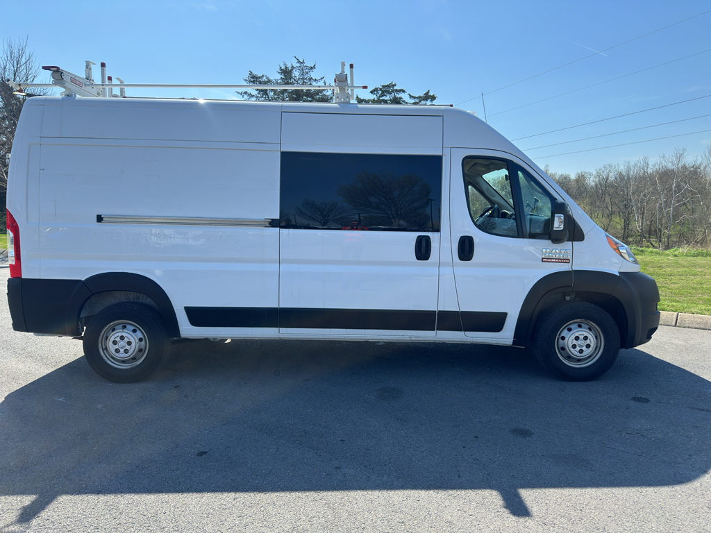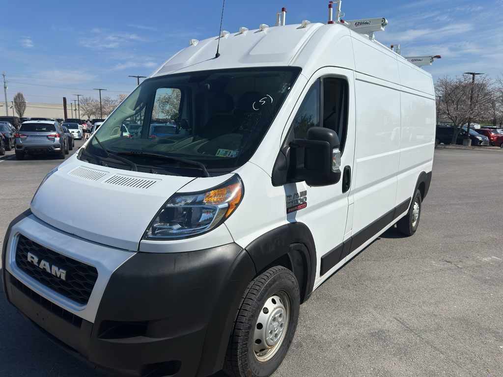 Plus, it has ample towing capacity. Anti-lock brakes will help you stop in an emergency. This 2021 Ram ProMaster 2500 has only one previous owner, verified by AutoCheck. This 3/4 ton van has a clean AutoCheck report, ensuring its impeccable vehicle history. The high efficiency automatic transmission shifts smoothly and allows you to relax while driving. See what's behind you with the back up camera on this Ram ProMaster 2500. This 2021 Ram ProMaster 2500 is a manufacturer certified pre-owned vehicle. Set the temperature exactly where you are most comfortable in this 2021 Ram ProMaster 2500 . The fan speed and temperature will automatically adjust to maintain your preferred zone climate. Electronic Stability Control is one of many advanced safety features on the Ram ProMaster 2500. This model has a V6, 3.6L high output engine. Front and rear side curtain airbags are included on this model. This unit has front air bags that will protect you and your passenger in the event of an accident. Stay safe with additional front side curtain airbags. This unit is front wheel drive. This unit can run on either gasoline or E85 fuel. It features a hands-free Bluetooth phone system. The Ram ProMaster 2500 features heated side mirrors keeping the ice off and your vision spot-on. Quickly unlock this Ram ProMaster 2500 with keyless entry. The rear parking assist technology on it will put you at ease when reversing. The system alerts you as you get closer to an obstruction. The vehicle has an adjustable telescoping wheel that allows you to achieve a perfect fit for your driving comfort. The vehicle comes standard with a state of the art traction control system. The vehicle embodies class and sophistication with its refined white exterior.