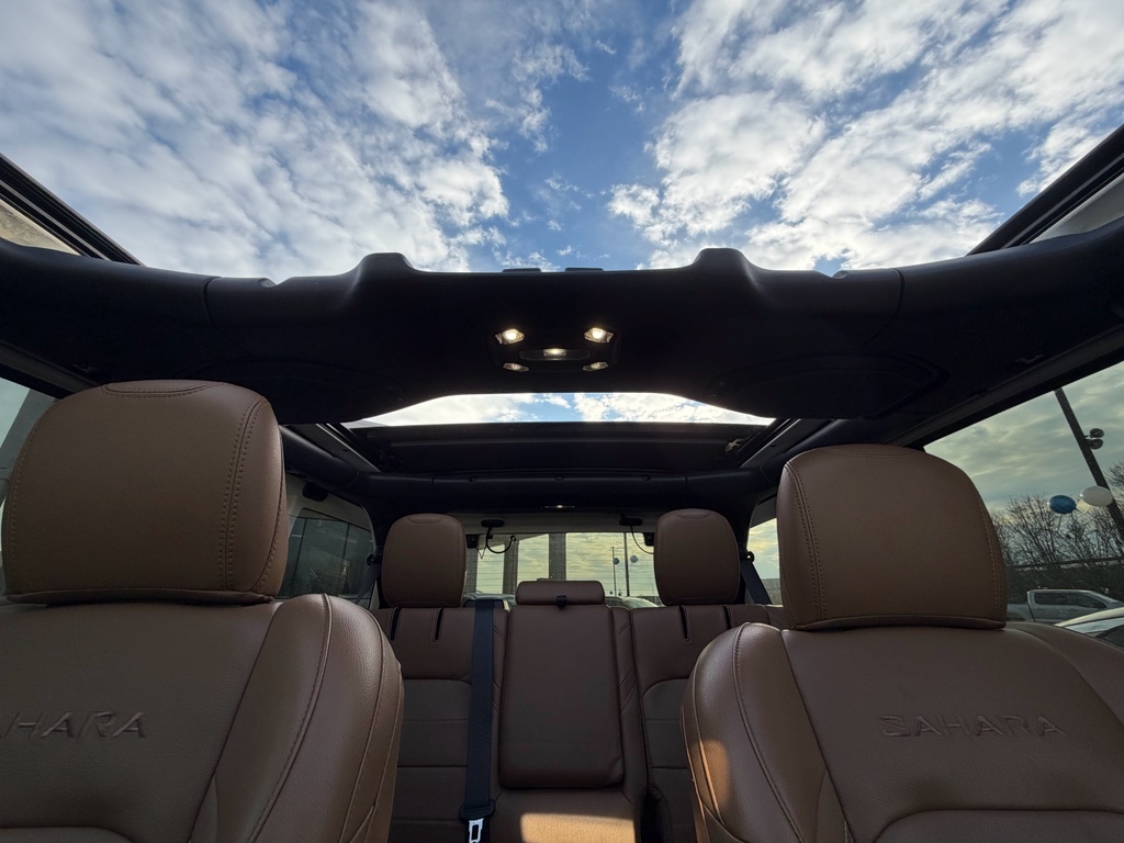 This Sahara trim brings premium comfort and convenience features including leather seats, Android Auto integration, and remote start for chilly mornings. Safety is prioritized with Forward Collision Warning and other active systems designed to keep you secure on every drive. The Unlimited body provides extra interior space for passengers and cargo, making this Jeep a practical choice for daily driving or weekend adventures.