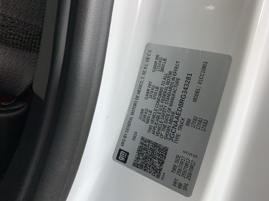 WT Fleet Convenience Package. Preferred Equipment Group 1WT: HD Rear Vision Camera; Bluetooth For Phone; Black (semi-Gloss) Front Bumper; Black (semi-Gloss) Rear Bumper; 3.5" Monochromatic Display Driver Info Center; Rubberized-Vinyl Floor Covering; Electrical Steering Column Lock; Standard Tailgate; 40/20/40 Front Split Bench Seat; 255/70R17 AS BW Tires; OnStar and Chevrolet Connected Services Capable; Power Front Windows with Passenger Express Down; Remote Keyless Entry; Inside Rearview Mirror with Tilt; Solar Absorbing Tinted Glass; SiriusXM Delete; Chevy Safety Assist; Manual Tailgate Function with No EZ Lift; Manual Tilt Wheel Steering Column; Power Front Windows with Driver Express Up/down; Front Frame-Mounted Black Recovery Hooks; Locking Tailgate; Heated Power-Adjustable Outside Mirrors. 17" X 8" Bright Silver Painted Aluminum Wheels. Electronic Cruise Control. Front Chrome Bumper. EZ Lift Power Lock and Release Tailgate. **Equipment listed is based on original vehicle build and subject to change. Please confirm the accuracy of the included equipment by calling the dealer prior to purchase.**