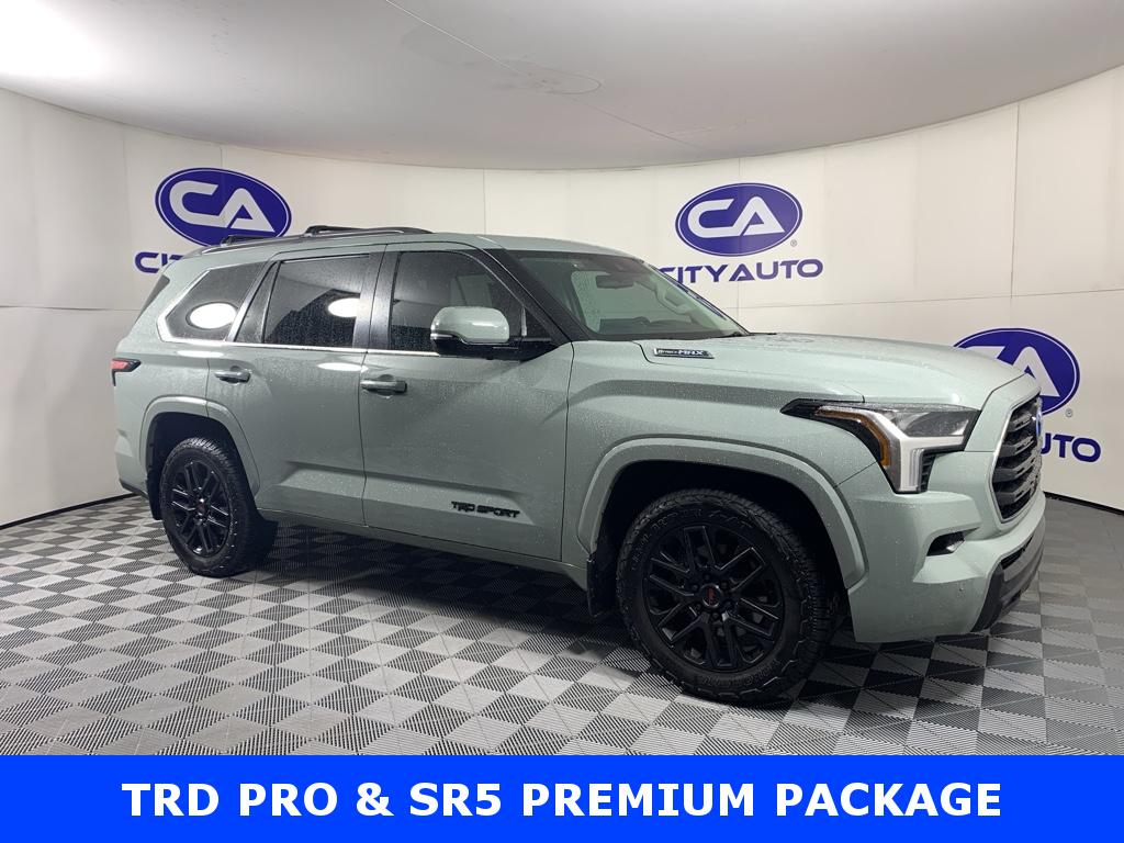 SR5 Premium Package- Includes 14-in. Audio Multimedia. SofTex-trimmed seats. power folding third row seats. hands-free power liftgate. and cargo & cabin power supply (400W/120V AC): 400W/120V Rear Seat and Cargo Area AC Power Outlet; SofTex Seat Trim; Toyota Multimedia with 14" Display. TRD Sport Package- Includes 20-in. TRD Sport alloy wheels. "TRD SPORT" badging. Bilstein shocks. red TRD engine start button. TRD leather shift knob. and aluminum sport pedals: P265/60R20 ILA Tires; 20" TRD Sport Matte-Black Alloy Wheels. All-Weather Liners/cargo Mat. Tow Technology Package. Heated Leather Steering Wheel. **Equipment listed is based on original vehicle build and subject to change. Please confirm the accuracy of the included equipment by calling the dealer prior to purchase.**