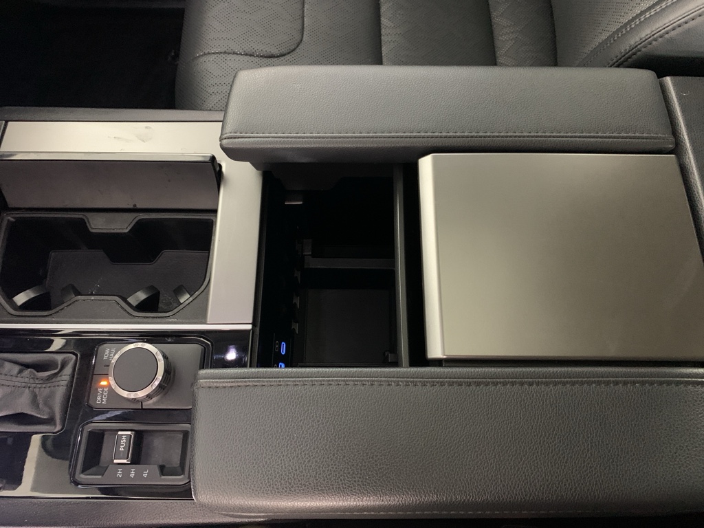 - Sliding front seat center armrest